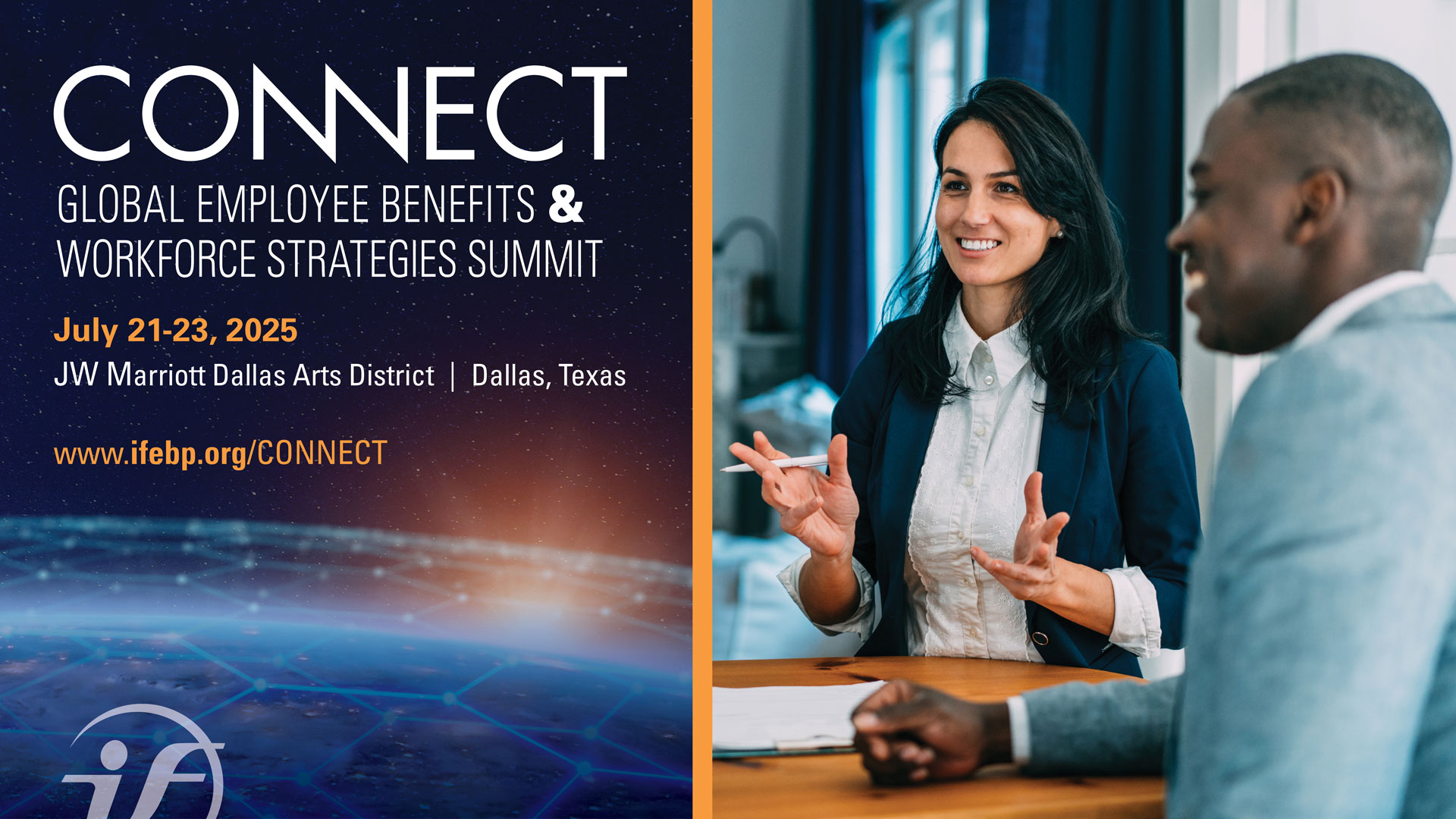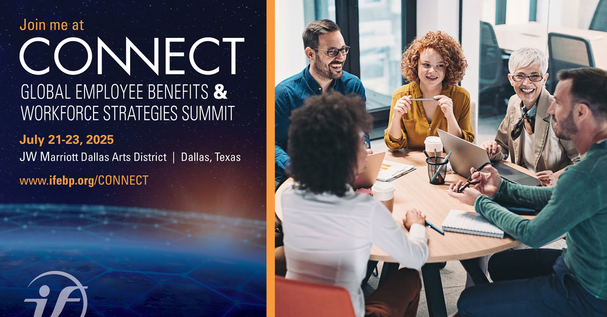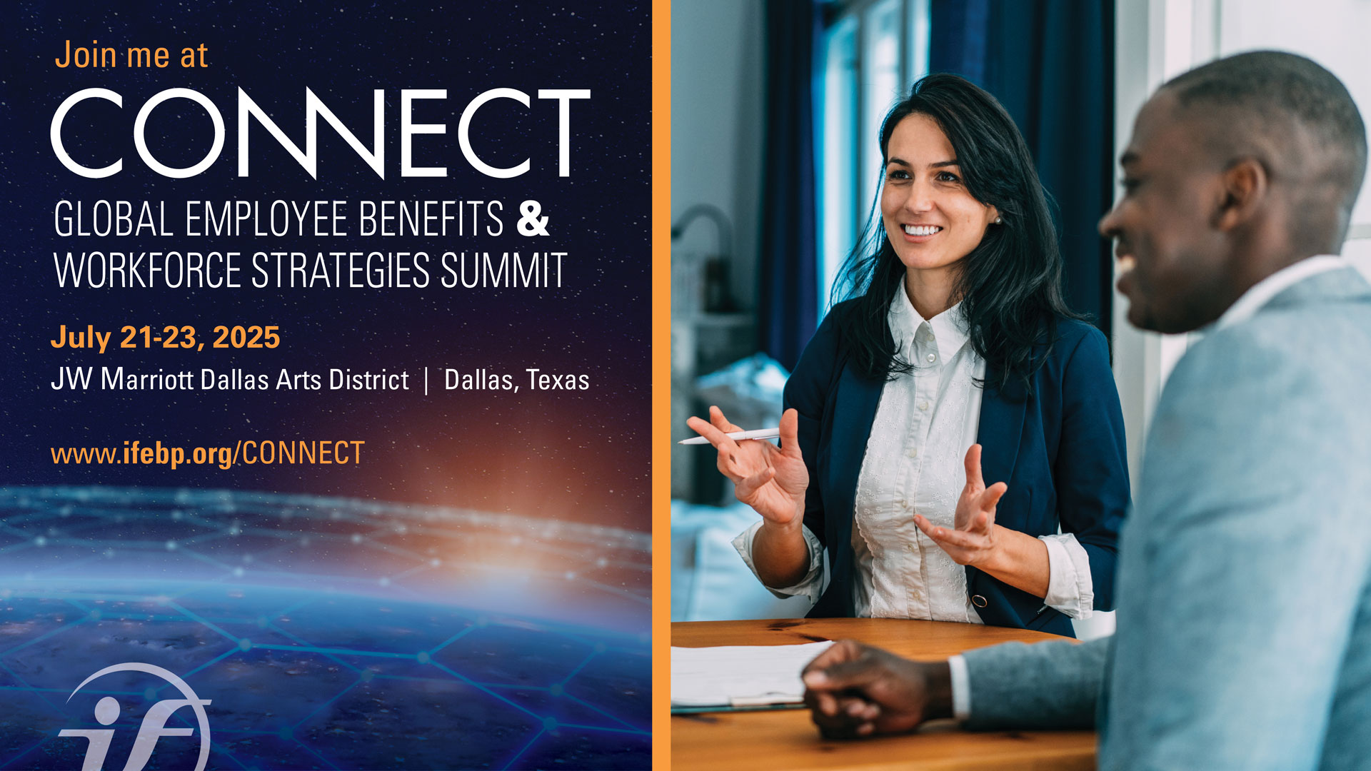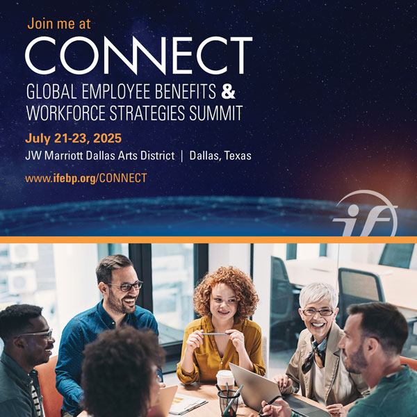 CONNECT Global Employee Benefits and Workforce Strategies Summit—learn key issues and trends for developing and maintaining a global total rewards strategy. Join your peers in Dallas, July 21-23, 2025 for the opportunity to learn from global industry leaders through innovative sessions, real-life case studies, roundtable discussions and a host of networking opportunities. www.ifebp.org/CONNECT